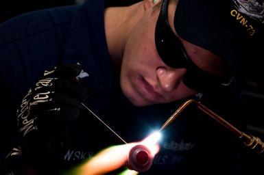 MAKE A MEME View Large Image Navy Imagery - Sailor brazes a low pressure air line valve fitting..jpg SEA OF JAPAN March 23 2011 Hull Maintenance Technician Jake Sadlowsky from Abingeon Il brazes a low pressure air line valve fitting George Washington departed from her ...