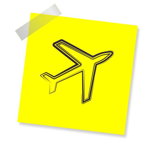 Keywords: flight aircraft flying tourism travel ticket airfare traveling airplane sign icon reminder yellow sticker post note