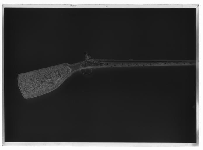 | Keywords: Flintlåsbössa av fransk-nederländsk typ ca 1650, stock av Johan Eberhart Sommer, Künzelsau - Livrustkammaren - 77798-negative.tif Publius Cornelius Scipio Africanus konsul plain text Rund slätborrad pipa av stål godstjocklek vid mynningen 0 8 mm Åttsidig kammaren vid övergången en smal ring kanterna fasade 12 mm bakom ringen vid pipbasen likaså en profilerad vulst på de tre övre faserna Därframför ett dekorfält i stålsnitt l 110 mm nästan hela fältet förgyllt baktill ett snäckliknande ornament med två nedhängande bladfestonger Därframför tre ryttare alla i rustning den i mitten barhuvad fas fältherrestav i h hand den h ryttaren har stav i v hand och fana i h den v ryttaren likaså fana båda hjälmklädda Ornamentfältet framtill avslutad med liknande snäckornament med bladfestonger kompletterade med bladknippe i mitten Rektangulärt svansskruvblad svagt böjt med bladdekor i stålsnitt <br/>Riktmedel Hjärtformigt sikte av förgylld mässing stolpkorn av mässing <br/>Fästning Pipan fäst med krysskruv underifrån dold av avtryckarblecket samt tre pipstift av stål <br/><br/>Flintlås med plant låsbleck delvis något fasade kanter dekor i stålsnitt på låsblecket bakom hanen ryttare i 1600-talsdräkt med fältherrestav i bakgrunden stad till h om hanen tillbakaseende fältherre till häst i bakgrunden tält S-formig platt hane med små rundade käkar överkäken lös graverad och punsad drakdekor rundat koniskt käkskruvhuvud hanskruv med huvud täckande hela hankroppen stålsnittsdekor i form av blomma Fängpanna med liten fals på gaveln sicksackdekor Batteri med rektangulärt eldstål med rundad överkant liten profilering nertill på ryggen Batterifjäder utan studel litet sexflikigt fjäderlöv Nöt utan studel <br/>Fästning Två låsskruvar <br/>C-formig avtryckare Rektangulärt avtryckarbleck <br/><br/>Helstock av valnöt med kolv av tidig fransk typ På kolvens h och undersida snidad dekor på h sida stridsscen täckande hela sidan ryttare i antikiserande rustningar och i förgrunden till v en på marken sittande skäggig krigare som stöttas av två krigare och framför honom en yngre man som håller en häst vid tygeln Längs nederkanten en inskuren latinsk text Scipio cui magnum dives dedit Affrica nomen // pugnantem ad Trebia litus mane patrem samt i ny spalt till h Eximit ingenti pressum discrimine belli // Iam puer et tuta sub statione locat Scipio som det rika Afrika gav ett stort namn giver redan såsom gosse den tidigt vid Trebias strand kämpande fadern ett säkert hägn och borttager honom från det genom ofantliga faror tryckande kriget Längst till höger signering Iohan EberHart // Somer Kolvens undersida svagt rundad två rektangulära fält båda med krigare i helfigur det bakre med en man sedd snett bakifrån huvudet profil h på huvudet ett lejonhuvud med manen hängande ner på ryggen antik rustning och kort mantel h hand håller i oval sköld v arm upplyft och håller i stav Herkules Det främre fältets man likaså sedd snett bakifrån huvudet profil v antik rustning med hjälm o plym ingen mantel gehäng med svärd v hand vilar på höften h håller en på marken stödd sköld Framför de två fälten en i bladverk övergående maskaron Hela stocken i övrigt dekorerad med rankverk av silvertråd med blad och blommor av graverade pärlmorplattor På anslaget i rankverket dessutom 17 fåglar av olika slag däribland en uggla och fem påfåglar i mitten en med uppfälld stjärt Belag av graverat silver bakplåt fäst med sju stålspikar runt spikarna samt mitt på bakplåten graverade blad Två släta rörkor samt näsband med blomdekor Varbygel av stål med korta släta armar främre stolpen kluben och främre armen har del även bakom stolpen litet flikigt löv baktill På bygeln en hillebardiär i låg relief <br/><br/>Tillbehör <br/>Laddstock av stockens trä l 1142 mm framtill skodd med silver l 27 mm med geometrisk dekor I andra änden spår av annat beslag original caption ca 1650 walnut e3 - eldvapen - stock material valnöt - steel e127 - eldvapen - pipa lås och stockbeslag material stål - silver thread e8 - eldvapen - stockdekor material silvertråd - silver e7 - eldvapen - stockbeslag material silver - mother-of-pearl e8 - eldvapen - stockdekor material pärlemor - brass e4 - eldvapen - riktmedel material mässing g 2520 size mm 1162 pipa size mm 1555 LRK Künstlerfamilie Sommer 1985 Scipio cui magnum dives dedit Affrica nomen // pugnantem ad Trebia litus mane patrem // Eximit ingenti pressum discrimine belli // Iam puer et tuta sub statione locat anv e3 - eldvapen - stock; Elin Thegerström Iohan EberHart // Somer anv e8 - eldvapen - stockdekor; Johan Eberhard Sommer Scipio cui magnum dives dedit Affrica nomen // pugnantem ad Trebia litus mane patrem // Eximit ingenti pressum discrimine belli // Iam puer et tuta sub statione locat anv e3 - eldvapen - stock; Elin Thegerström Iohan EberHart // Somer anv e8 - eldvapen - stockdekor; Johan Eberhard Sommer place of origin original filename LN_B04659_007539 55357 inventory number LRK 18794 77798 CC0 Flintlåsbössa av fransk-nederländsk typ ca 1650 stock av Johan Eberhart Sommer Künzelsau - Livrustkammaren - 77798 tif <gallery caption Different images of same object > File Flintlåsbössa av fransk-nederländsk typ ca 1650 stock av Johan Eberhart Sommer Künzelsau - Livrustkammaren - 43890 tif File Flintlåsbössa av fransk-nederländsk typ ca 1650 stock av Johan Eberhart Sommer Künzelsau - Livrustkammaren - 81541 tif File Flintlåsbössa av fransk-nederländsk typ ca 1650 stock av Johan Eberhart Sommer Künzelsau - Livrustkammaren - 64420 tif File Flintlåsbössa av fransk-nederländsk typ ca 1650 stock av Johan Eberhart Sommer Künzelsau - Livrustkammaren - 72982 tif File Flintlåsbössa av fransk-nederländsk typ ca 1650 stock av Johan Eberhart Sommer Künzelsau - Livrustkammaren - 13151 tif File Flintlåsbössa av fransk-nederländsk typ ca 1650 stock