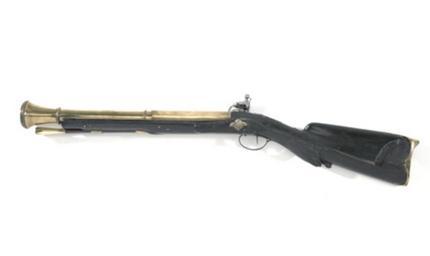 MAKE A MEME View Large Image Flintlåsmuskedunder, v sida - Livrustkammaren - 48227.jpg Rund vid kammaren åttsidig slätborrad pipa av mässing dekorringar vid övergången mellan de olika partierna och den klockformiga mynningen På kammaren graverat LONDON samt ...