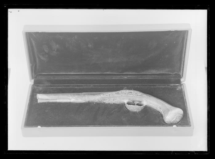 Keywords: Flintlåspistol ändrad till slaglås. Felix Meier, Wien ca 1719-1721 - Livrustkammaren - 60519.tif Slätborrad brunerad pipa med åttsidig kammare vid övergången till det främre runda partiet ett tvärgående profilerat band På pipbasen i guld ett spegelmonogram T G B krönt av en grevekrona samt signatur FELIX MEIER På svansskruvbladet enkel kantdekor På pipans h sida en pålödd tändhattssnäcka <br/>Riktmedel Siktskåra på svansskruvbladet spolformigt stolpkorn av mässing <br/>Fästning Ett häfte två pipstift av stål <br/><br/>Flintlås ändrat till slaglås Plant låsbleck med fasade kanter graverad dekor Bakom hanen en trofégrupp med fanor och sabelklingor framför hanen en hjälmprydd mansfigur med fanor trumma och pilar samt ovanför detta signatur FELIX MEIER bakom hanen IN WIENN Hanen slät och kantig hanskruv med skåra samt solformigt ingraverade streck <br/>Fästning Två låsskruvar <br/>Avtryckare med upprullad ände <br/><br/>Stock av valnöt med snidad volutdekor runt spetsrörka och svansskruvblad Snidad kantdekor över hela stocken Beslag av förgylld mässing med genomgående snidade och graverade voluter c-formiga bågar och rankor Kolvkappa med svagt fyrpassformig toppig centrumplatta på sidorna krigare med hjälmar av antiktyp flikar gående till låset Tumplåt med Bielke-vapen krönt av grevekrona sköldhållare två gripar Genombrutet sidbleck av kraftiga voluter och bågar Oval bred varbygel med kantdekor som övrig dekor på mitten medaljong med krigare som på kolvkappan På bakre fästet graverat No 6 En rörka bakåtutdragen i spets Näsband med samma dekor mot horisontellt skrafferad bakgrund <br/><br/>Tillbehör <br/>Laddstock av trä l 265 mm hornskoning original caption Livrustkammarens jubileum 1928 other date - 1719 1721 steel e12 - eldvapen - pipa och lås material stål - brass e47 - eldvapen - riktmedel och stockbeslag material mässing - walnut d3 - dräkt - mellanfoder material valnöt kg 1025 size mm 436 size mm 264 pipa size mm 130 LRK Ture Gabriel Bielke greve riksråd 1684-1763 Stockholm Sverige J G Ormested herr FELIX MEIER IN WIENN Felix Meier in Wienn anv e2 - eldvapen - lås; Felix Meier Meyer FELIX MEIER Felix Meier Meyer T G B o grevekrona anv e1 - eldvapen - pipa; Ture Gabriel Bielke FELIX MEIER IN WIENN Felix Meier in Wienn anv e2 - eldvapen - lås; Felix Meier Meyer FELIX MEIER Felix Meier Meyer T G B o grevekrona anv e1 - eldvapen - pipa; Ture Gabriel Bielke place of origin original filename LN_B03077_005957 41858 inventory number LRK 5201 60519 CC0 Flintlåspistol ändrad till slaglås Felix Meier Wien ca 1719-1721 - Livrustkammaren - 60519-negative tif Flintlock pistol Images from Livrustkammaren Media contributed by LSH unmatched event Media contributed by LSH dim-with multiple size templates Media contributed by LSH unmatched creator Media contributed by LSH 2013-10 |