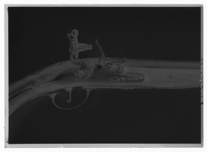 Keywords: Flintlåspistol, Hans Zimmerman, silverbeslag troligen av Daniel Schwarzkopf - Livrustkammaren - 18412-negative.tif Rund slätborrad pipa av stål kammarens bakre del kantig överfasen avbruten av snidade blad och voluter och fortsätter som en plan list fram till kornet samt med ett blad fram till mynningen Böjt svansskruvblad med rundad ände bakom skruvhålet inhugget 4 <br/>Riktmedel Vid pipbasen en profilerad vulst infilad siktskåra Spolformigt korn av silver <br/>Fästning Två häften pipan fäst med krysskruv samt ett urspr två pipstift av stål <br/><br/>Flintlås av stål med välvt låsbleck med smal kantlist graverad dekor i form av dubbla kantlinjer Graverad signatur följande hanens och fängpannans rundningar HANS // ZIMMERMAN // COPENHAGEN S-formigt svängd rundad hane med kantlist och rankdekor med drakhuvud i stålsnitt Hanskruv med x-skåra Runda käkar överkäken låg och blånerad blånerad käkskruv med balusterformigt huvud Rundad fängpanna med skålad fals blad i stålsnitt på ytteränden Batteri med välvt fängpannelock och eldstål på eldstålet kantlister och bladvolut i stålsnitt Batterifjäder med delvis fasade kanter bladdekor bet-formigt fjäderlöv <br/>Fästning Två låsskruvar <br/>Avtryckare med upprullad ände Konturerat avtryckarbleck av blånerat stål <br/><br/>Helstock av valnöt med sliten snidad bladdekor vid svansskruvbladet snidade grenar Näsband av horn Beslag av silver Kolvkappa med långa flikar på kolvsidorna blad- och pärlstavsdekor släta kantlister Oval centrumplatta med lejonmaskaron i relief på plattans insida en silverstav fäst med skruv från varbygelurtaget Under centrumplattan på kolvkappan delvis otydliga silverstämplar otydligare än på nr 4709 Köpenhamn 170 guardein-stämpel CLWM Conrad Ludolf 1679-1729 månadsstämpeln saknas delvis utplånad mästarstämpel D K Böje nr 315 Daniel Schwarzkopf 1699-1727 Oval slät tumplåt med graverat vapen delvis bortslitet krönt med furstligkrona sköldhållare två lejon Hjärtsköld Oranien-Chalon-Geneve åtföljd av ovan Meurs och nedan Bueren Fält 1 Nassau 2 Katzenellenbogen 3 Vianden 4 Dietz 5 Spiegelberg 6 Liessfeldt Sidbleck i form av ett genombrutet rankverk med drakhuvud En + en profilerad rörka slät spets med graverade blad Varbygeln välvd med kantlister främre armen 8-formig med symmetriskt genombrutet ändblad lång bakre arm med rundad ände blad i relief mittpå bakre armen graverat N 4 original caption - 1702 1711 steel e127 - eldvapen - pipa lås och stockbeslag material stål - silver e47 - eldvapen - riktmedel och stockbeslag material silver - walnut e3 - eldvapen - stock material valnöt - horn e7 - eldvapen - stockbeslag material horn size mm 470 size mm 289 pipa g 960 LRK Johan Wilhelm Friso Nassau-Dietz prins Fredrik I av Sverige C L M W anv e7 - eldvapen - stockbeslag; Condrad Ludolf HANS ZIMMERMAN COPENHAGEN anv e2 - eldvapen - lås; Hans Christian Zimmermann Timmermand C L M W anv e7 - eldvapen - stockbeslag; Condrad Ludolf HANS ZIMMERMAN COPENHAGEN anv e2 - eldvapen - lås; Hans Christian Zimmermann Timmermand place of origin original filename LN_B10032_012912 41225 inventory number LRK 4710 18412 CC0 Flintlåspistol Hans Zimmerman silverbeslag troligen av Daniel Schwarzkopf - Livrustkammaren - 18412 tif |