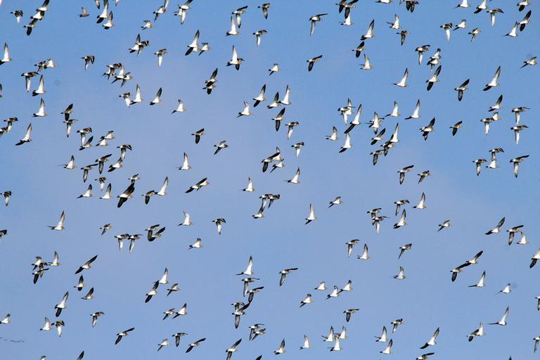 Keywords: flock of birds geese migratory birds swarm wild geese fly birds water bird wild goose