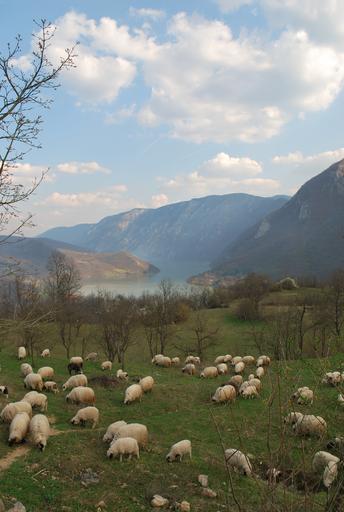 Keywords: flock of sheep herd of sheep on the drina landscape bosnia sheep drina