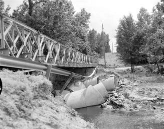 Keywords: richmond va usa hurricane agnes hurricaneagnes virginia flood flooding natural disaster richmond va usa naturaldisasterrichmondvausa blackandwhite monochrome outdoor black and white Route 618 in Caroline County suffered flooding and erosion due to Hurricane Agnes. This damaged bridge is at Whyte's Pond (sic, White's Lake). Some of piers have collapsed and sandbags are scattered around the bridge. No. 72-1319, Virginia Governor's Negative Collection, Library of Virginia. Route 618 in Caroline County suffered flooding and erosion due to Hurricane Agnes. This damaged bridge is at Whyte's Pond (sic, White's Lake). Some of piers have collapsed and sandbags are scattered around the bridge. No. 72-1319, Virginia Governor's Negative Collection, Library of Virginia. |