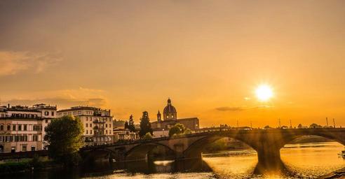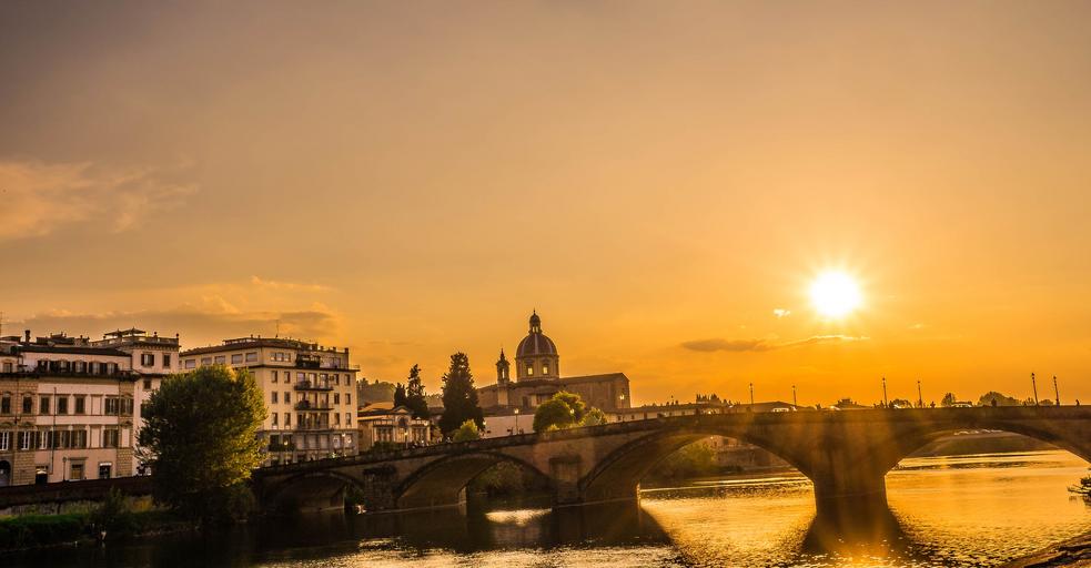 Keywords: florence italy ponte vecchio sunset lense flare sun city sky clouds urban buildings skyline architecture outside river water arno river bridge