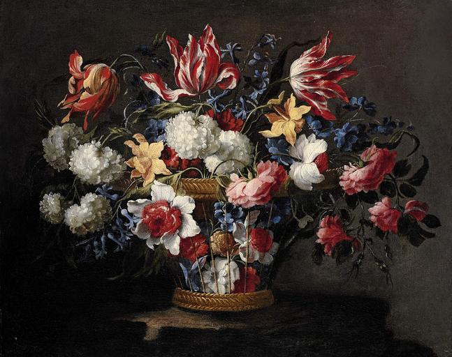 | Keywords: Flores en una cesta.jpg Artwork Creator Juan de Arellano b 1676 Oil canvas cm 57 2 71 1 object history credit line accession number http //www invertirenarte es/mercadodearte/imagenes/2007-8/diciembre 2001/christies_juan_de_arellano jpg PD-old-100 Still life paintings by Juan de Arellano Bouquets in art Narcissus in art Still-life paintings of tulips Still life paintings of roses Chiaroscuro still-life paintings Still life paintings of flower baskets | ||||