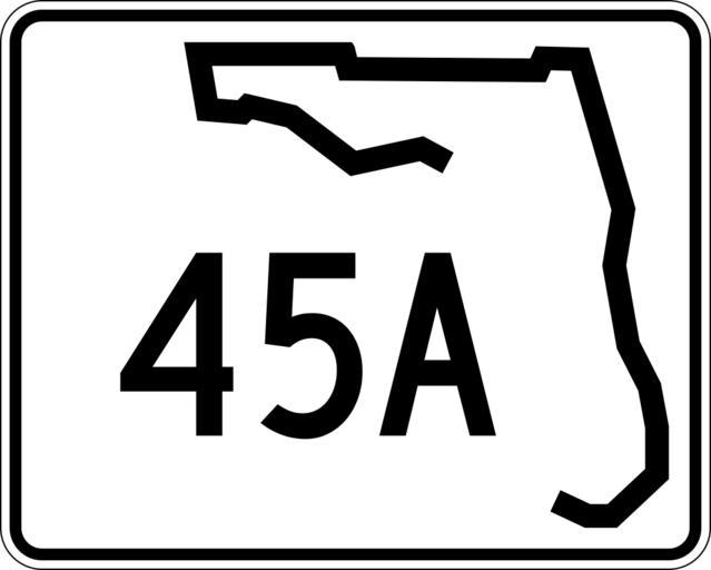 | Keywords: Florida 45A.svg 30 in by 24 in 750 mm by 600 mm Florida State Road shield made to the specifications of the http //www dot state fl us/rddesign/rd/RTDS/17355s1-12of12 pdf sign detail Uses the http //www triskele com/fonts/index html Roadgeek 2005 fonts United States law does not permit the copyrighting of typeface designs and the fonts are meant to be copies of a U S Government-produced work anyway The outside border has a width of 1 1/16 in and a color of black so it shows up; in reality signs have no outside border Note that the drawing does not provide the border width or curve radii The previous page does but seems very inaccurate Thus those measurements are approximated from the drawing The state outline is extracted from the PDF and cleaned up to make the inside match the outside own SPUI spuiother Florida State Road shields 045A |