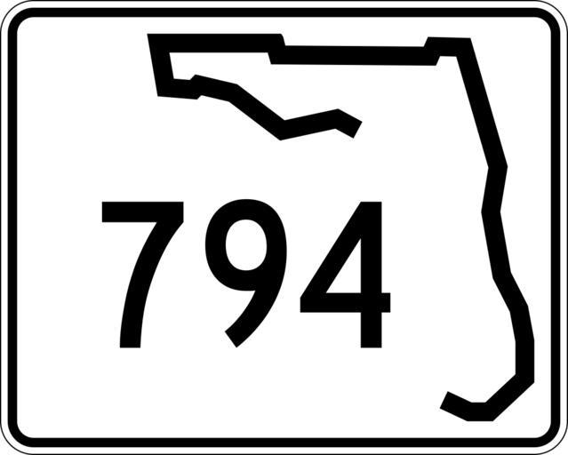 Keywords: Florida 794.svg 30 in by 24 in 750 mm by 600 mm Florida State Road shield made to the specifications of the http //www dot state fl us/rddesign/rd/RTDS/17355s1-12of12 pdf sign detail Uses the http //www triskele com/fonts/index html Roadgeek 2005 fonts United States law does not permit the copyrighting of typeface designs and the fonts are meant to be copies of a U S Government-produced work anyway The outside border has a width of 1 1/16 in and a color of black so it shows up; in reality signs have no outside border Note that the drawing does not provide the border width or curve radii The previous page does but seems very inaccurate Thus those measurements are approximated from the drawing The state outline is extracted from the PDF and cleaned up to make the inside match the outside own SPUI spuiother Florida State Road shields 794 794 number |