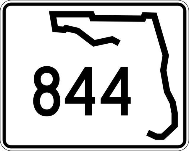 Keywords: Florida 844.svg 30 in by 24 in 750 mm by 600 mm Florida State Road shield made to the specifications of the http //www dot state fl us/rddesign/rd/RTDS/17355s1-12of12 pdf sign detail Uses the http //www triskele com/fonts/index html Roadgeek 2005 fonts United States law does not permit the copyrighting of typeface designs and the fonts are meant to be copies of a U S Government-produced work anyway The outside border has a width of 1 1/16 in and a color of black so it shows up; in reality signs have no outside border Note that the drawing does not provide the border width or curve radii The previous page does but seems very inaccurate Thus those measurements are approximated from the drawing The state outline is extracted from the PDF and cleaned up to make the inside match the outside own SPUI spuiother Florida State Road shields 844 844 number
