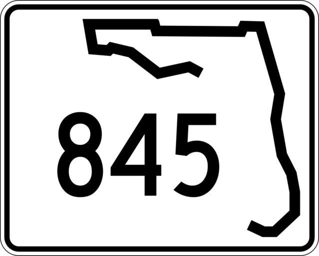 | Keywords: Florida 845.svg 30 in by 24 in 750 mm by 600 mm Florida State Road shield made to the specifications of the http //www dot state fl us/rddesign/rd/RTDS/17355s1-12of12 pdf sign detail Uses the http //www triskele com/fonts/index html Roadgeek 2005 fonts United States law does not permit the copyrighting of typeface designs and the fonts are meant to be copies of a U S Government-produced work anyway The outside border has a width of 1 1/16 in and a color of black so it shows up; in reality signs have no outside border Note that the drawing does not provide the border width or curve radii The previous page does but seems very inaccurate Thus those measurements are approximated from the drawing The state outline is extracted from the PDF and cleaned up to make the inside match the outside own SPUI spuiother Florida State Road shields 845 845 number |
