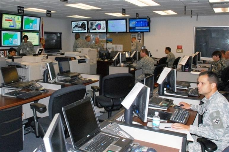 | Keywords: Florida National Guard Prepares for Tropical Storm Fay DVIDS109346.jpg en Members of the Florida National Guard prepare for a shift change at the Joint Emergency Operations Center in St Augustine The center has been supporting operations in advance of Tropical Storm Fay since Florida Gov Charlie Crist signed an executive order Aug 16 2008 2008-08-16 John Myatt https //www dvidshub net/image/109346 109346 2008-08-18 16 15 TALLAHASSEE FL US PD-USGov August 2008 in Florida People using computers in the 2000s Florida National Guard Images from DoD uploaded by Fæ |