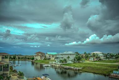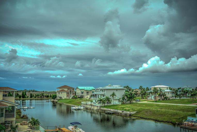Keywords: florida skyscape nature blue weather white landscape summer dramatic canal tropical palm trees water outdoors