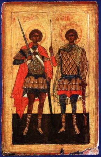 Keywords: Florus and Laurus (Russia, 15 c.).jpg Святые Фло и Лав в об азе воинов Конец 15 века Цент альная Россия Де ево левкас темпе а 70 8х45 2 см Икона является памятником д евне усской живописи вто ой половины XV века Ее стиль от ажает как новго одские так и московские т адиции Иконог афия св Фло а и Лав а имских каменщиков в воинском облачении - уникальна Икона п едставляет художественную и музейную ценность http //www piterskii ru/photo/ikony/4-0-94 2 h 15 c anonymous PD-Art Florus and Laurus Files uploaded by Shakko from various sources |