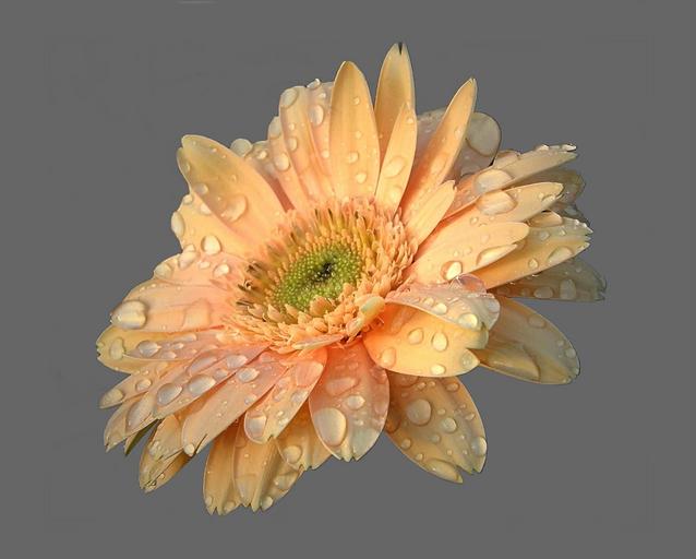 Keywords: flower blossom bloom salmon gerbera gerbera hybrid summer raindrop isolated