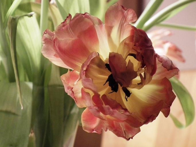 Keywords: flower blossom bloom tulip close red yellow faded withered