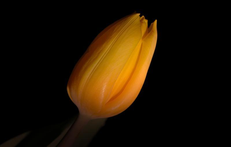 Keywords: flower blossom bloom yellow tulip dark lighting close