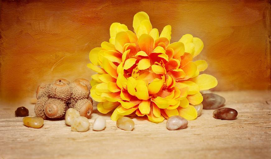 Keywords: flower blossom bloom yellow plastic flower fabric flower stones deco decoration decorative painting digital painting