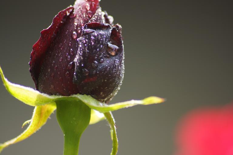 Keywords: flower blossom floral rose dark black bulb water drops