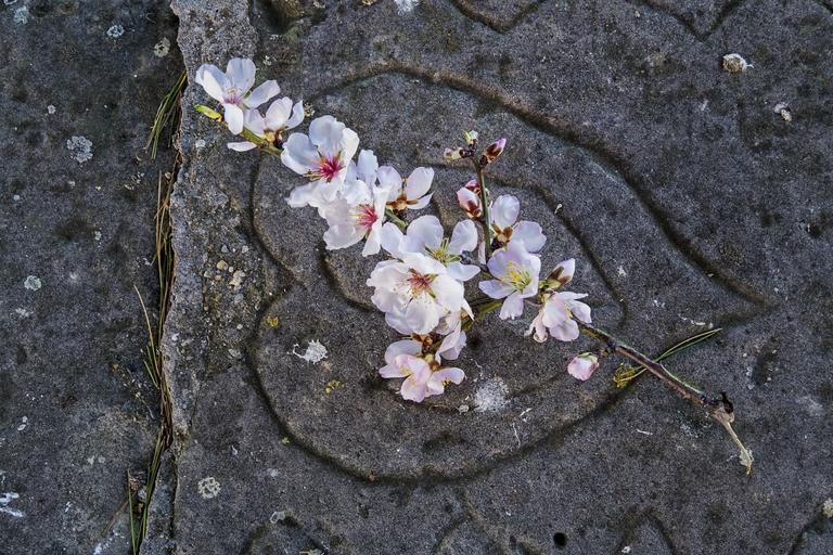 Keywords: flower flowers almond white flower plants almond blossom nature beauty branch heart stone