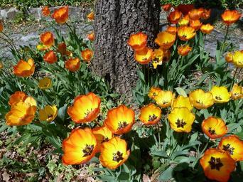 Keywords: flower garden tulip yellow red nature spring flowering orientation