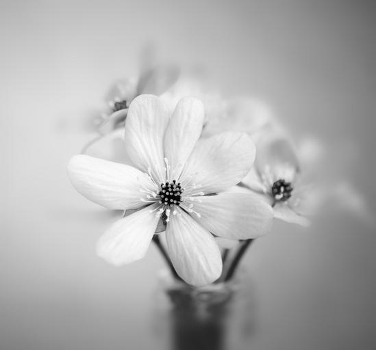 Keywords: flower hepatica vase blossom bloom petals forest flower deco decoration close early bloomer spring flower black and white black and white recording tender flowers photography