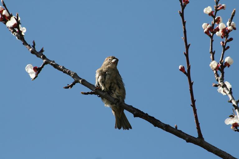 Keywords: flower of logany friends bloom spring nature peach blossom flower peach branch petal flower buds sparrow bird garden