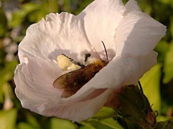Keywords: flower pollen hibiscus bee insect white sunset