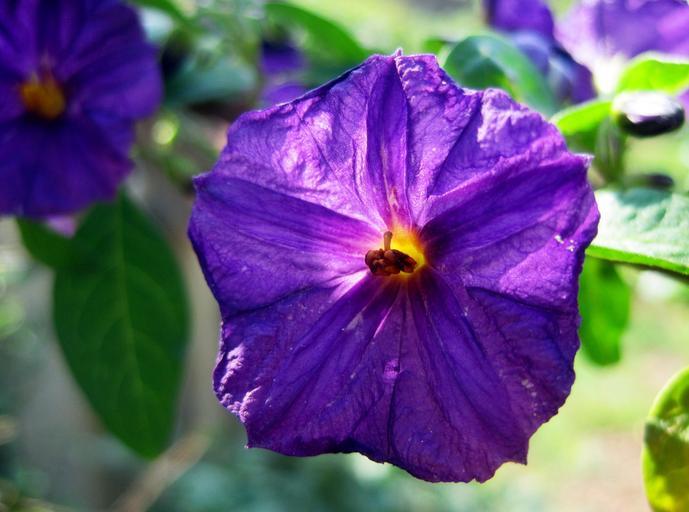 Keywords: flower purple geometric shape delicate centr yellow potato bush