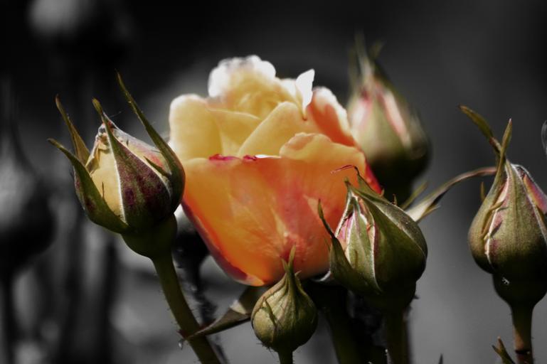 Keywords: flower rose blossom bloom rose bloom yellow orange color black and white