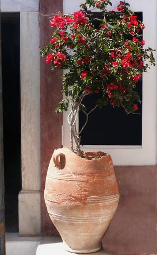 Keywords: flower santorini caldera blue greece aeolian island volcano mediterranean oia sea island nature vegetation travel pottery