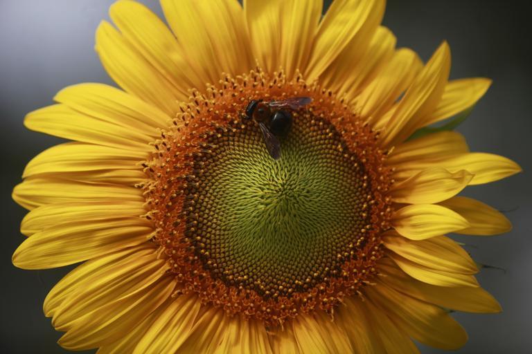 Keywords: flower sunflower bee nature summer yellow plant blossom flora blooming agriculture