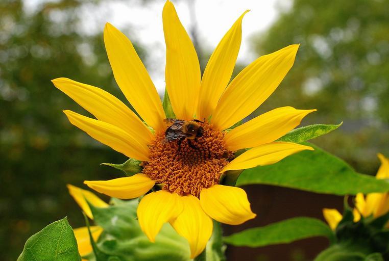 Keywords: flower sunflower yellow green nature summer floral plant beautiful blossom petals insect macro blooming closeup botany bee season garden beauty natural outdoor detail