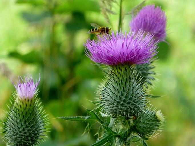 Keywords: flower thistle bee insect wild flower prickly blossom bloom plant nature pink nectar