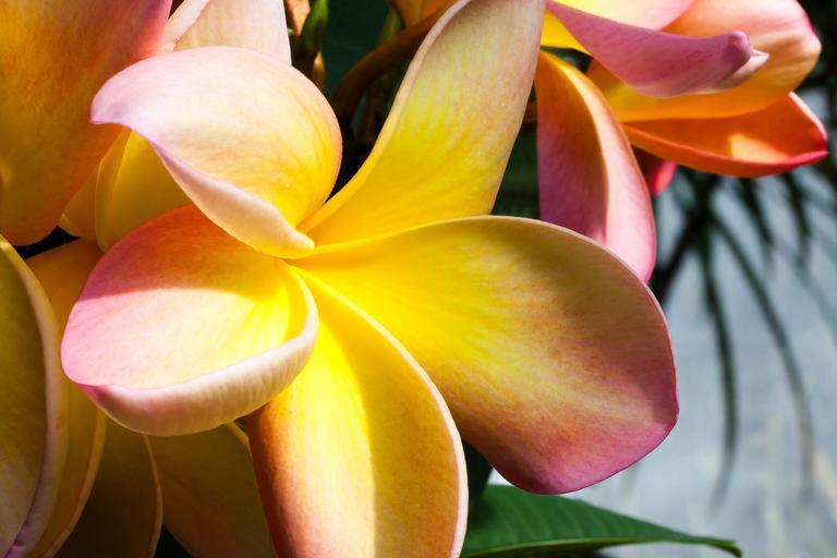 Keywords: flower tropical frangipani plumeria frangipandi flor de cebo temple tree macro fragrance fragrant dog gift greenhouse blossom bloom yellow pink summer bush