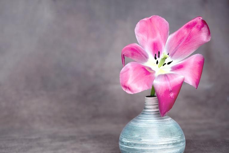Keywords: flower tulip pink blossom bloom petals pistil flower stamp vase close still life spring flower schnittblume