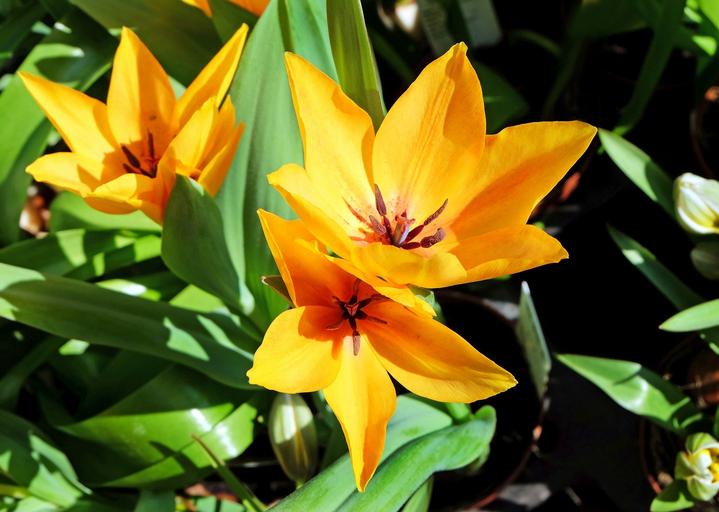 Keywords: flower tulips flowers yellow orange early bloomer spring