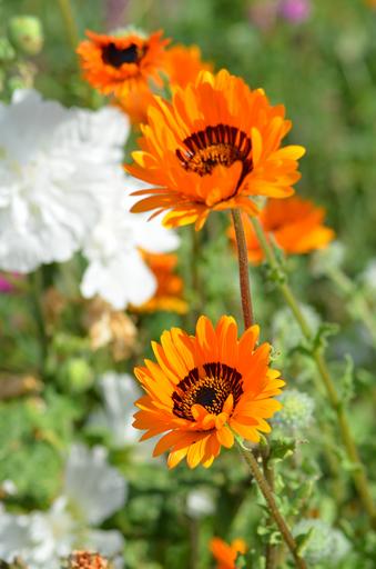 Keywords: flower white flowers nature pollen white summer flowers white flower petals garden green orange spring summer hollyhock marguerite orange trémières