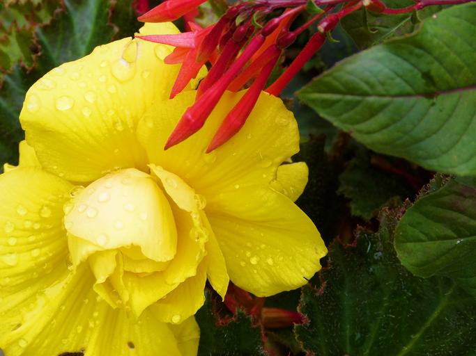 Keywords: flower yellow raindrops plant nature floral blossom color bright garden natural fresh freshness