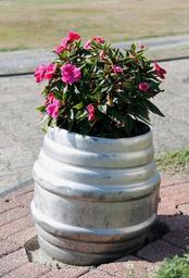 Keywords: flowers beer keg planters plant nature