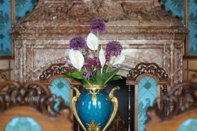 Keywords: flowers flower pot plant flower composition dining table bouquet turquoise