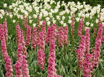 Keywords: flowers hollyhocks summer garden nature pink blossom blooming floral colorful