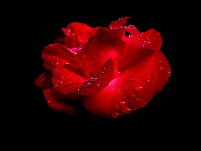 Keywords: flowers macro nature garden red rose dew drops petals blossomed contrast perfume love
