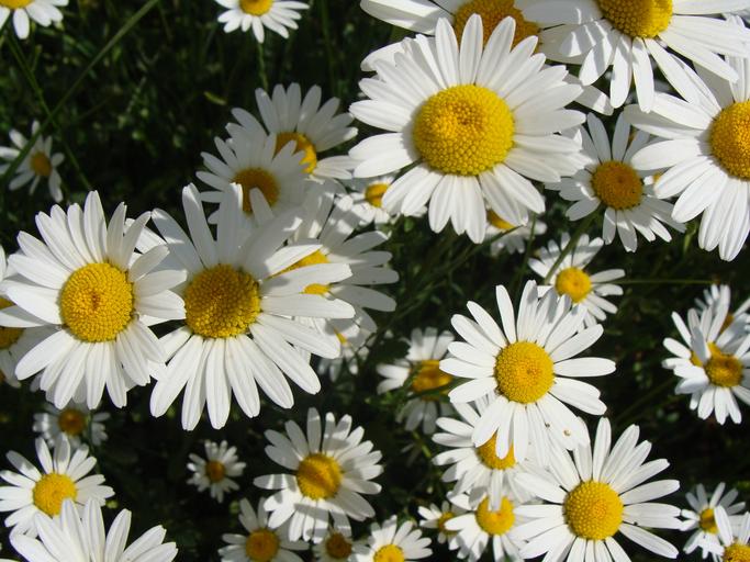 Keywords: flowers marguerite ox eye white summer yellow blooming blossoms petals bright fresh plant