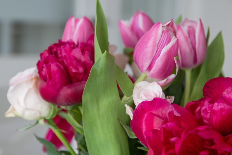 Keywords: flowers peony tulips roses bouquet colorful bouquet of flowers pink close