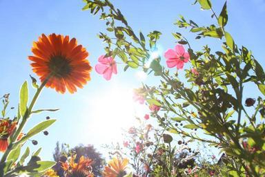Keywords: flowers photographed from below gegenlichtaufnahme back light sunbeam sun lighting spring summer nature light beam