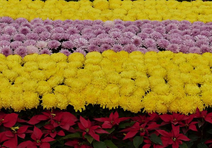 Keywords: flowers plant deco chrysanthemums yellow stripes poinsettia vietnam hanoi