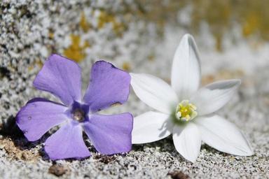 Keywords: flowers purple white background purple flower nature plant spring close stone ground moss grey old weathered
