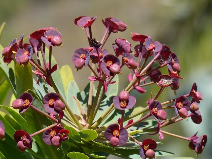 Keywords: flowers red inflorescence spurge euphorbia atropurpurea euphorbia spurge family euphorbiaceae palmate tenerife