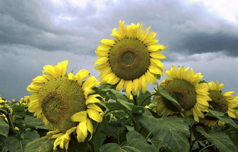 Keywords: flowers sunflowers blooming yellow blossoms growing floral bright petals fresh colorful close up